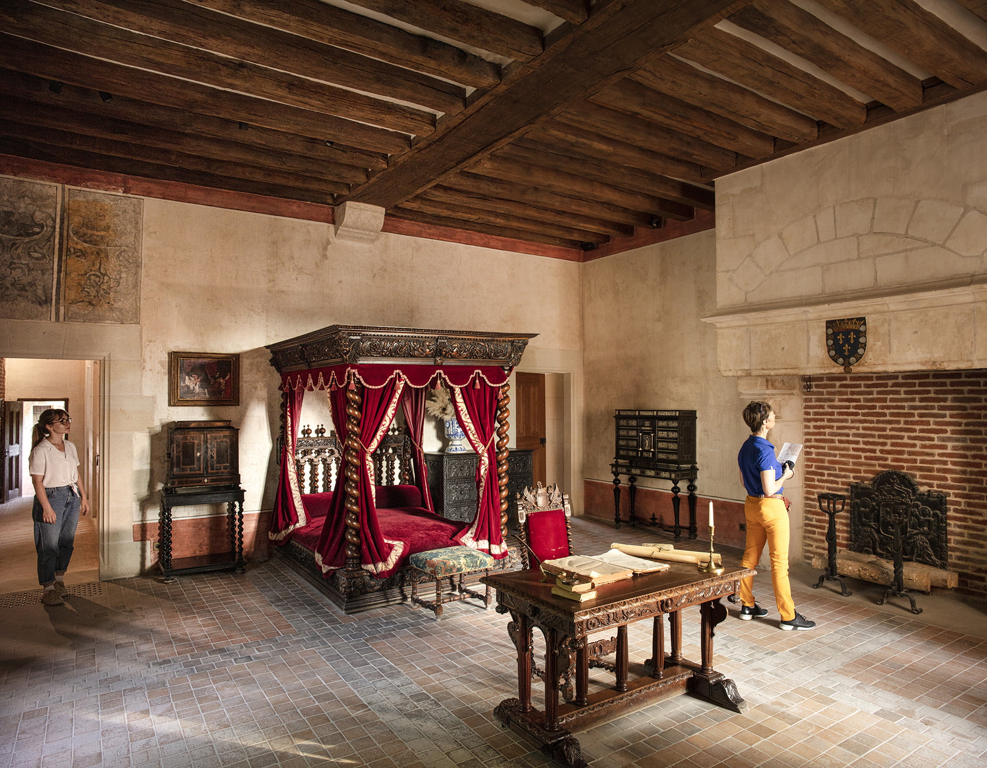 King Charles VIII took possession of the property. He added a majestic oratory in tufa stone to the small red-brick manor house. Bearing the royal coat of arms, fleur-de-lys and ermine tail, this oratory became a place of meditation for the young Queen Anne of Brittany. Forced into marriage at the age of fourteen, the young sovereign rested there after her multiple pregnancies, waiting in vain to offer the king her long-awaited inheritance. When her husband died accidentally on April 7, 1498, Anne left Amboise to join Louis XII, who forced her to marry again. Louise de Savoie took up residence at the Clos Luce, accompanied by her children Marguerite and François, the future François 1er.